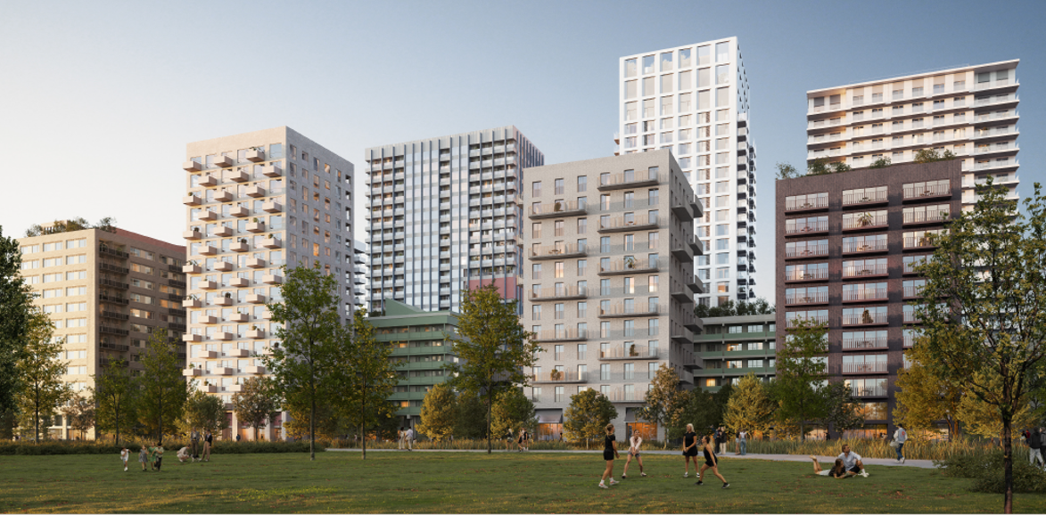 Het voornemen is om het kantoorpand te slopen en verschillende nieuwe woongebouwen te realiseren met minimaal 1.000 betaalbare woningen.